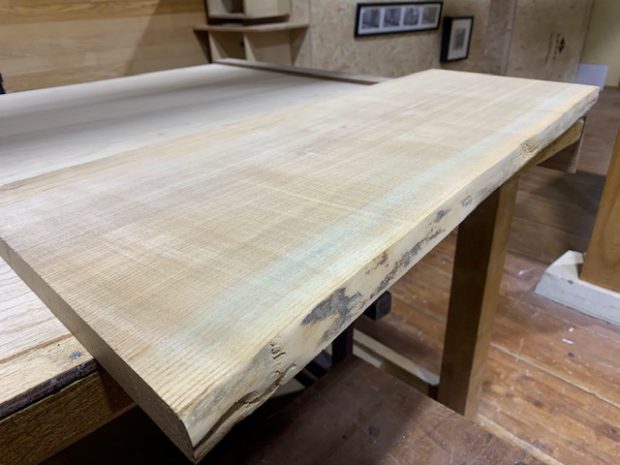 今回ご紹介しているタモ片耳付き板、木目がまっすぐで美しいでしょう?